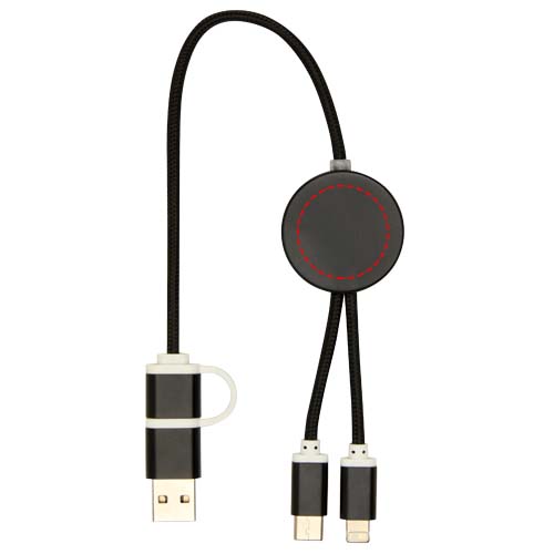 Das Alasia 27 W 5-in-1 Daten- und Schnellladekabel besteht aus dünnem, langlebigem recyceltem Aluminium und recyceltem Kunststoff. Das Kabel verfügt über einen USB-A- und einen Typ-C-Eingang sowie einen kombinierten Typ-C- und Lightning/Micro-USB-Ausgang. USB-A zu USB-C liefert max. 27 W Ausgangsleistung, alle anderen Anschlüsse max. 15 W. Kompatibel mit CarPlay und Android Auto. Ob zu Hause, im Büro oder unterwegs, das Alasia Kabel bietet Leistung und Stil in einem kompakten Paket. Länge des Kabels: 30 cm.