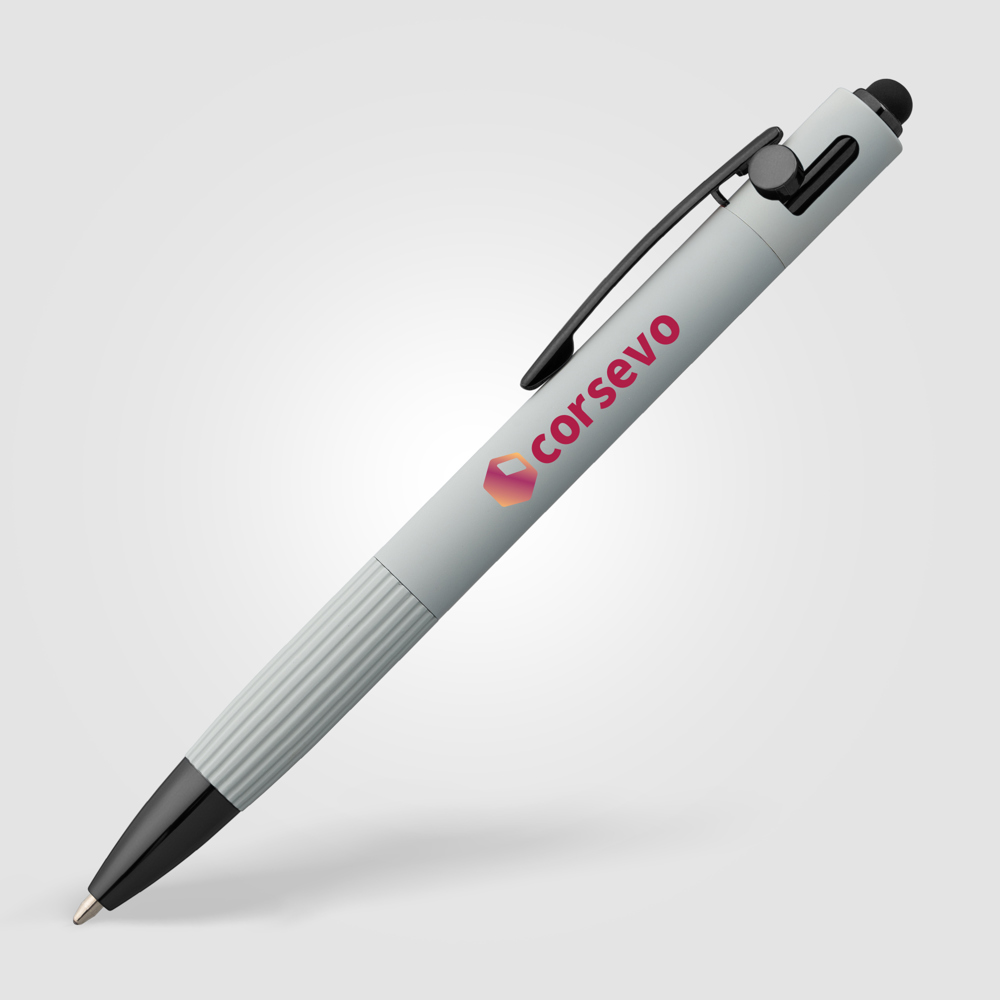 Saga Kugelschreiber mit Druckmechanismus und Stylus aus recyceltem Aluminium