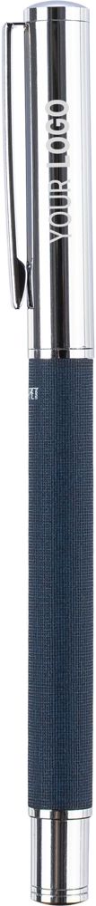 Dieser Rollerball-Stift ist aus Messing und rPET gefertigt und verfügt über einen Metallclip sowie ein Griffstück. Er verfügt über einen Schiebemechanismus und ein rPET-Logo auf dem Gehäuse. Er ist einzeln verpackt in einer braunen Pappschachtel. Blaue Tinte.