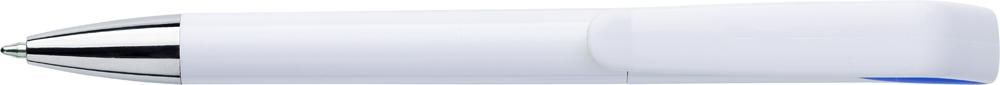 Drehkugelschreiber aus Kunststoff, mit farbigen Akzenten und blauer Mine. mehr