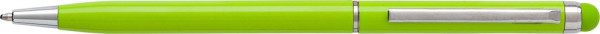 Kugelschreiber aus Aluminium, farbig lackiert, mit Drehfunktion, Metall-Clip, Touch-Pen in Schaftfarbe und blauer Mine.