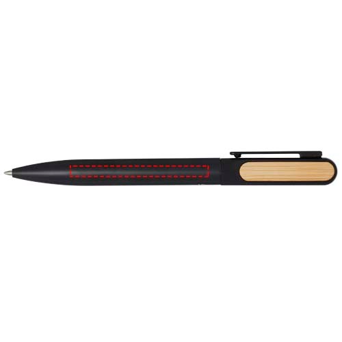 Der Blanca Kugelschreiber hat einen oberen Schaft aus recyceltem Kunststoff mit einer farbigen Sprühbeschichtung und Bambusaccessoires auf beiden Seiten. Der untere Teil des Schafts besteht aus recyceltem Aluminium mit einer farbigen Pulverbeschichtung. Tintenfarbe: Blau. Schreiblänge: 400 Meter. Strichstärke: 1,0 mm.