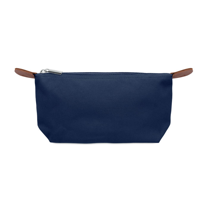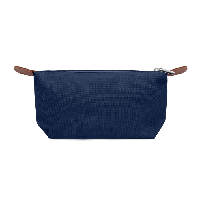 Kosmetiktasche aus 600D RPET-Polyester mit Reißverschluss. Details aus PU.