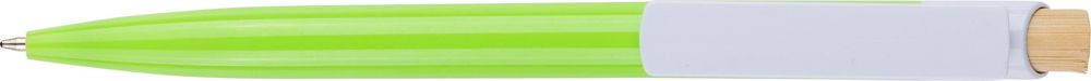 Recycelter ABS-Kugelschreiber mit Bambus-Druckknopf und weißem Clip. Mit recyceltem Logo im... mehr
