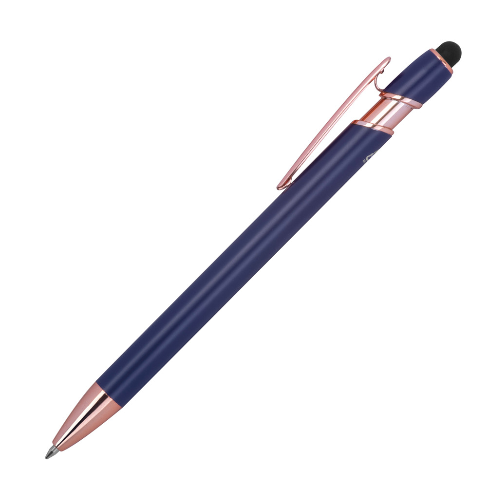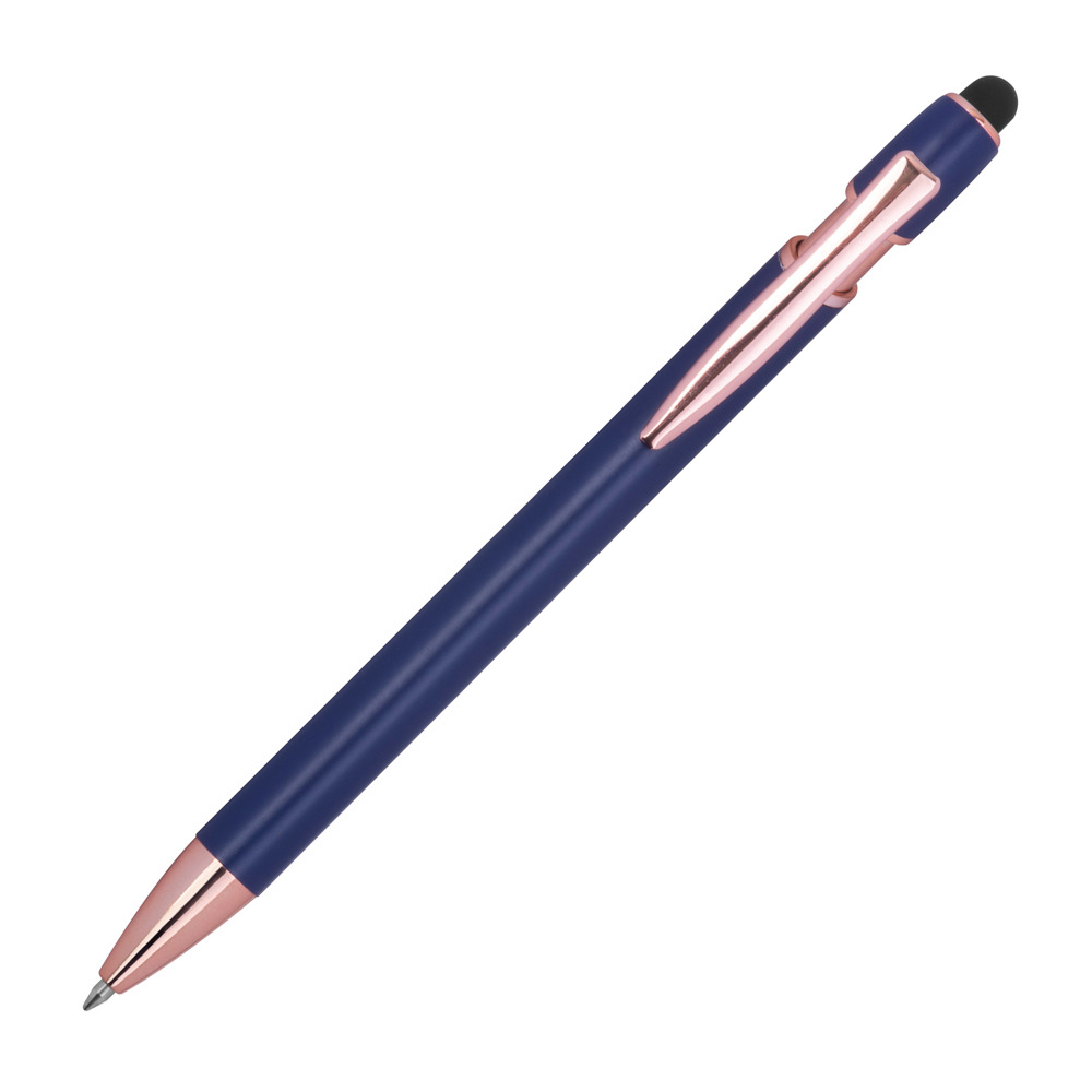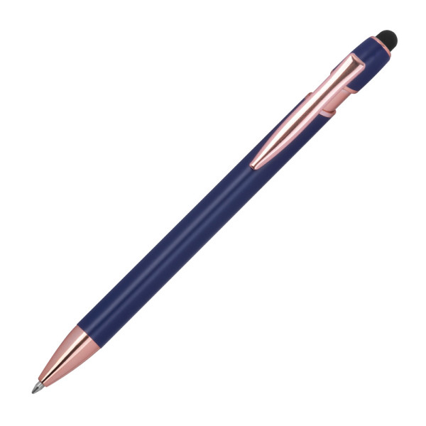 Semi Gelschreiber aus recyceltem Aluminium mit Touch-Pen und blauschreibender Großraummine (1 mm Tip). Ihre Werbung bringen wir mittels einer Lasergravur am Schaft an.